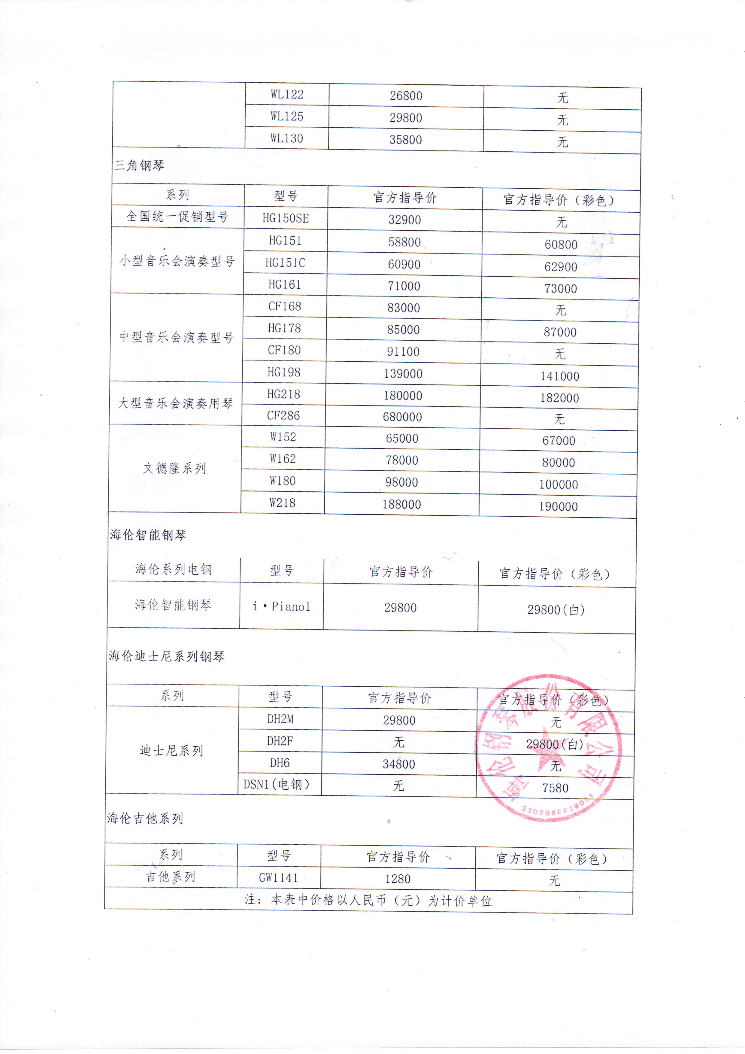 關于海倫鋼琴官方指導價格公示的通知