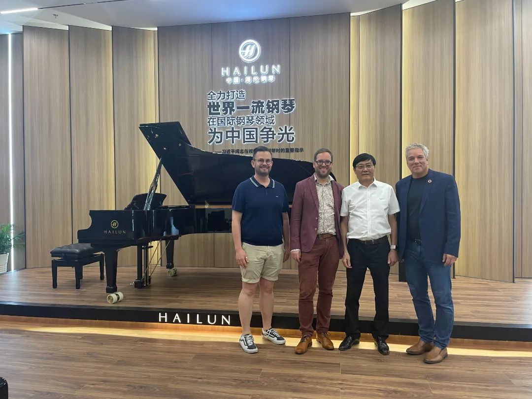 近日,世界國際音樂比賽聯盟(WFIMC)的董事會成員雅克·馬奎斯、馬可斯·巴克、羅伯·希爾布林克蒞臨海倫鋼琴參觀交流。海倫鋼琴董事長陳海倫,海倫鋼琴董事、副總經理陳斌卓對三位董事會成員的來訪表示熱烈歡迎和親切問候。