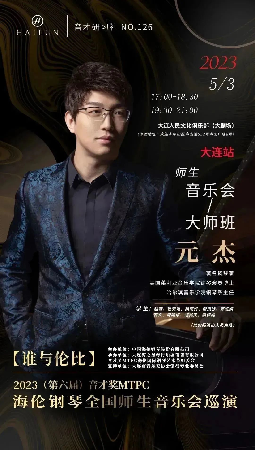 演出預(yù)告丨2023(第六屆)音才獎MTPC海倫鋼琴“誰與倫比”全國音樂會巡演大連站—元杰師生音樂會·大師班即將來襲